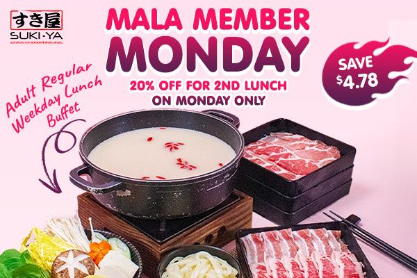 Mala Member Monday - Adult Regular Weekday Lunch Buffet E-voucher - 20% Off For 2nd Diner On Monday Only (Save $4.78)