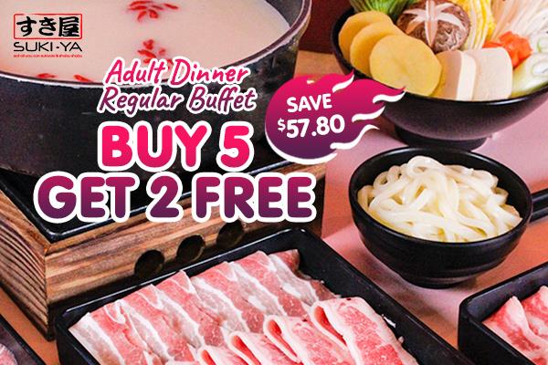Adult Regular Weekday Dinner Buffet E-voucher - Buy 5, Get 2 FREE (Save $57.80)