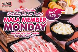 Mala Member Monday - Adult Regular Weekday Dinner Buffet E-voucher - 20% Off For 2nd Diner On Monday Only (Save $5.78)